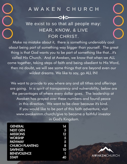 Give without fees or interest so that all of the money you choose to faithfully invest goes directly to Awaken Church. Click the link to set up your account through Zelle. Email give@awakennm.church